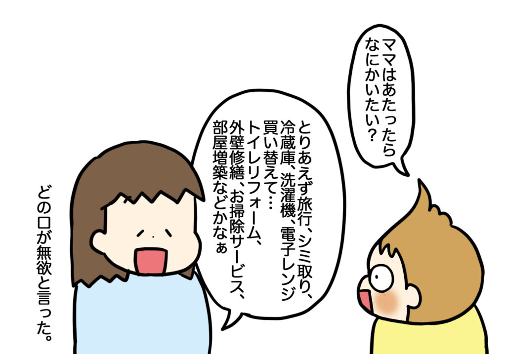 欲しい物は沢山ありますが、やっぱり家関連のことが多いので、それならいっそのこと丸ごと引っ越していろいろ買い替えたいなと思ってます。